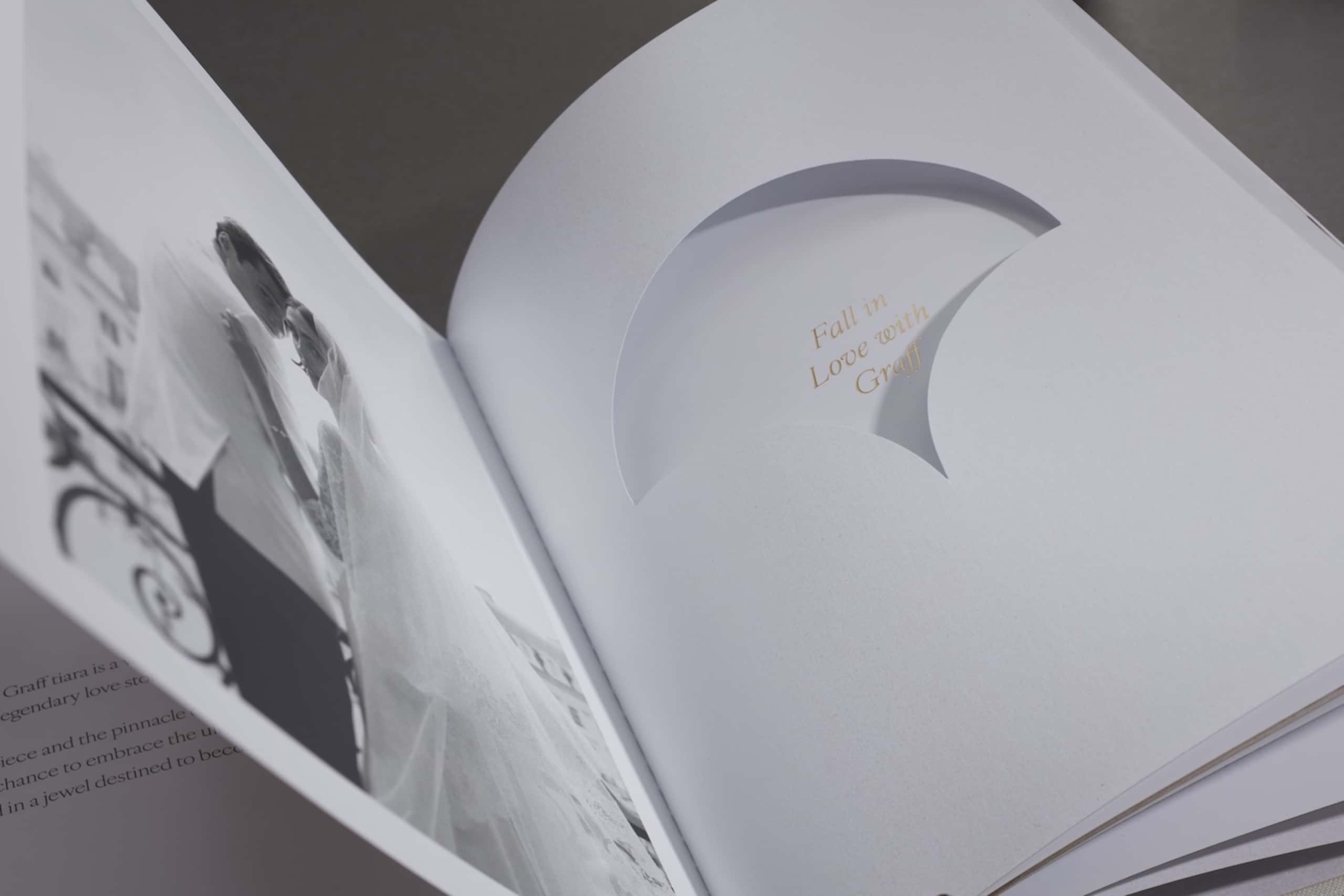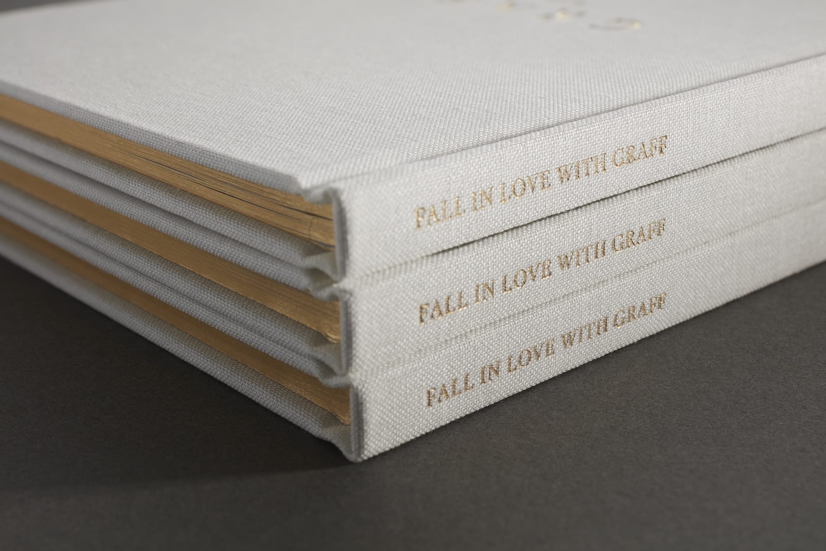 The case cover is finished with gold foiling and debossing, with die-cut tip-in pages and text gold foiled throughout, edged in matching gold and case bound for a refined, durable finish.